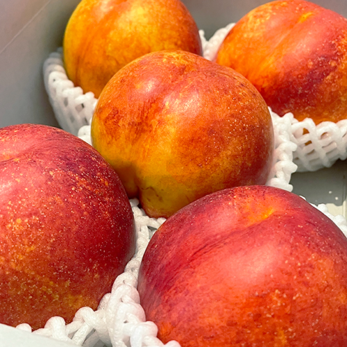 ネクタリンは“つるつるの桃”。品種「秀峰」は大玉で外観の赤色が映え、果肉は橙黄色、果汁豊富です!